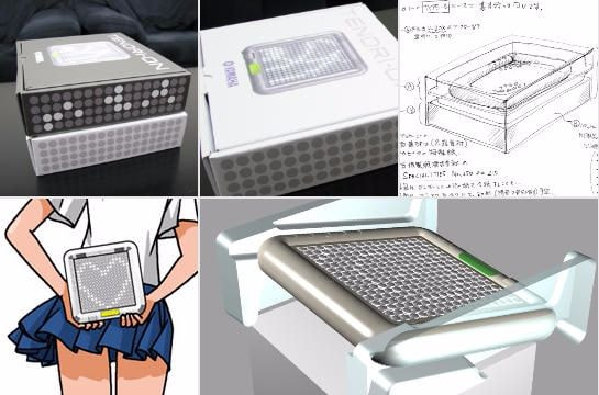 透明梱包のパッケージデザインを草案にて検討、その後カラー梱包箱検討のプロセスをへて現在の梱包箱に至経過にTENORI-ONらしいパッケージ造りを心がけました。