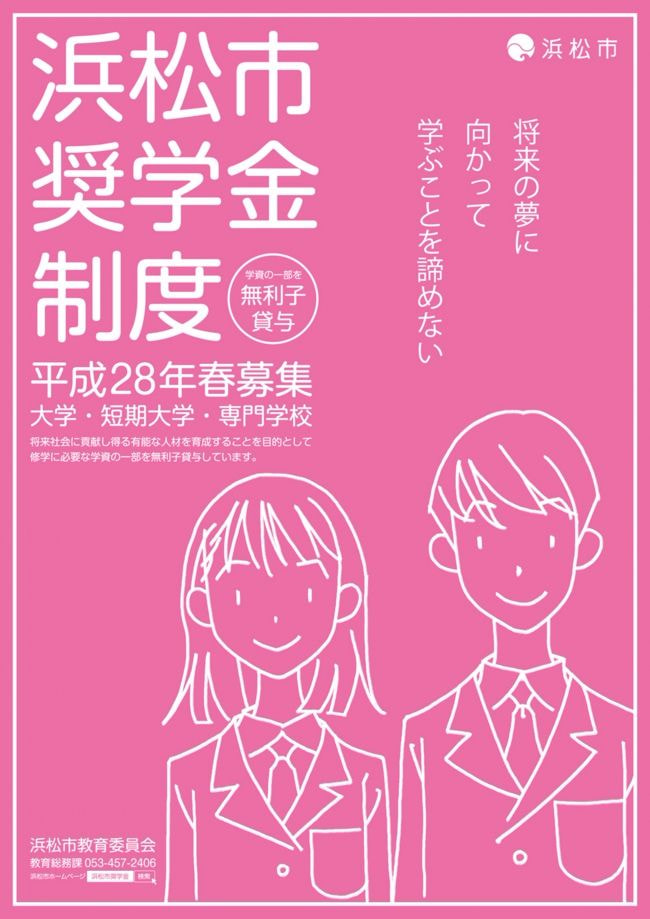 浜松市教育委員会 2015 奨学金制度告知ポスター