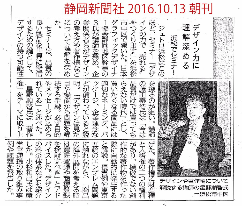 ●2016年5月JAGDA(公益社団法人日本グラフィックデザイン協会)静岡地区代表幹事の任期を終え、地区監査と静岡地区幹事として活動。